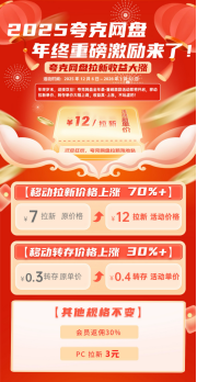 年底一直以来都是赚钱的黄金窗口期,各类需求集中爆发,流量红利扎堆。夸克网盘顺势推出年底拉新福利加码活动,对于想赚一笔年终额外收入的人来说,这波福利千万别错过。不用复杂技巧,找对年底用户需求的痛点,跟着节奏推进,就能轻松把流量变成沉甸甸的佣金。