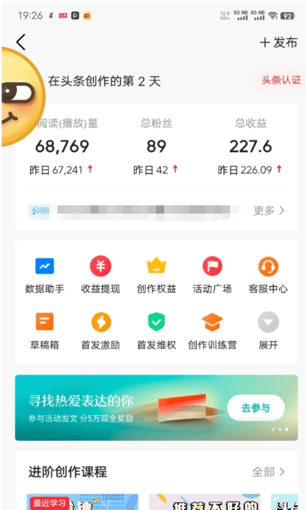 很适合新手去做,我愿称之为最适合新手做的副业,主要就是把名人书籍里的精彩片段抄写下来或者打字,然后配上图片,发到有播放就有收溢的平台头条号里,最快隔天就能看到效果
