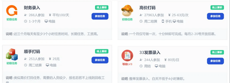 这个就是賺点辛苦钱,很辛苦和枯燥单价还低,主要工作就是打字录入,比如发票,书籍,录音转文字等等。任务种类很多。