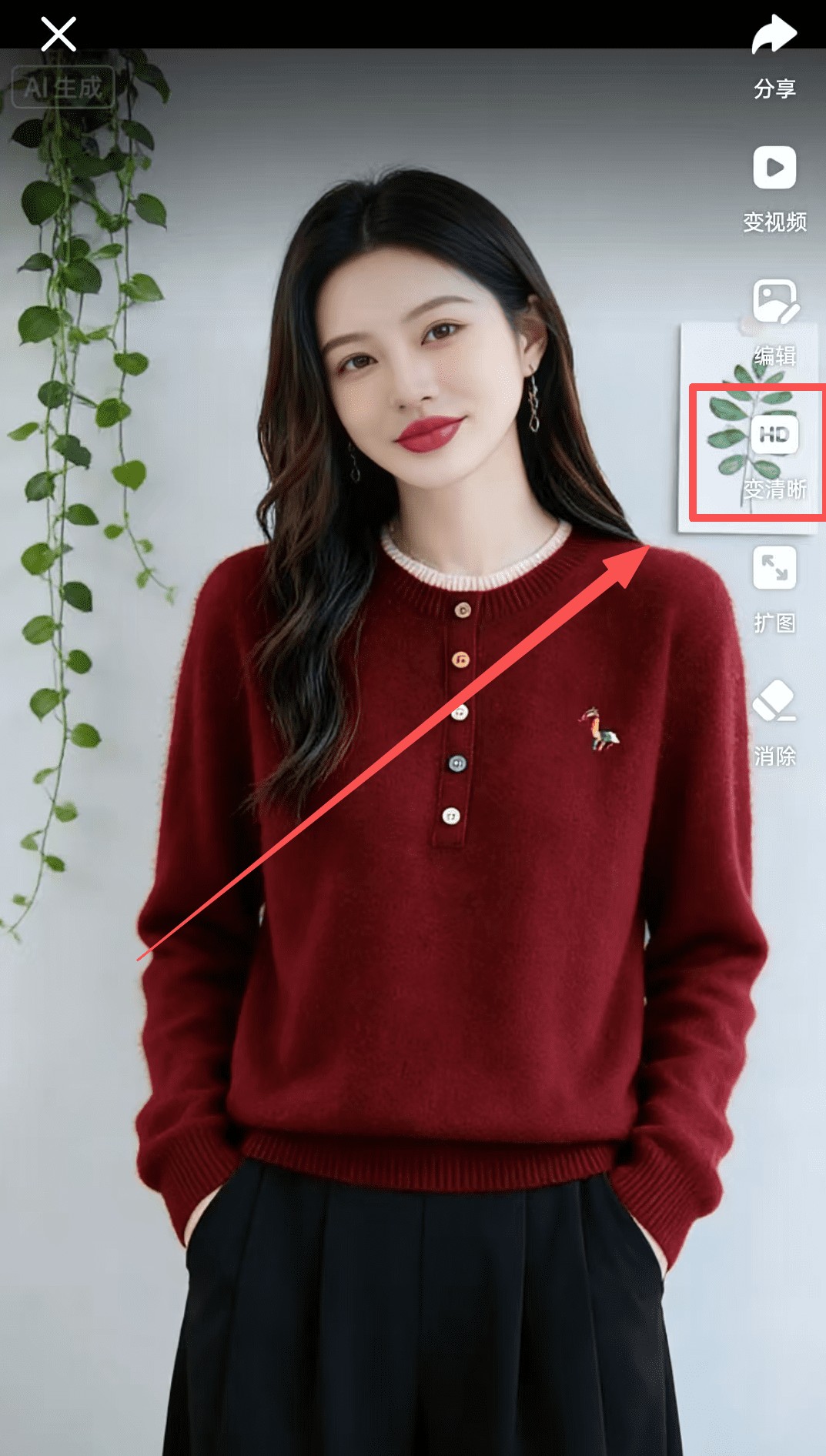 转高清的方法也非常简单,点开图像,选择右侧的变清晰就可以了,这个方法之前的文章也介绍过,就不多说了。