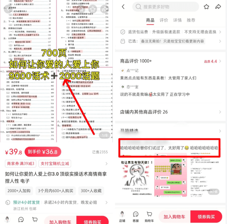 就拍手册摊开的页面,比如,翻到男朋友不回消息话术那页,把具体话术露出来,旁边放个手机,手机里截张粉丝评论,这个话术我昨天用上了,他立马回我了!配文:手册里的话术,都是帮你们试过的;