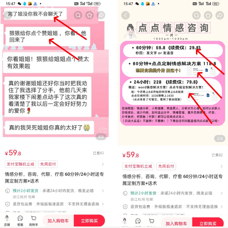 话术手册卖39.9,打卡表卖29.9,这个价格区间,不管是刚上班的女生还是学生党,都不会觉得心疼,而且对比心理咨询一次几百块,显得特别划算;