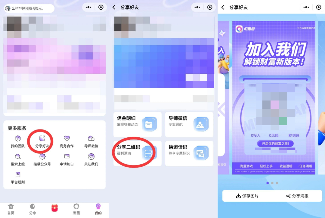 只要有人通过你的链接或海报进入并玩游戏,你就能获得持续的分享收益。