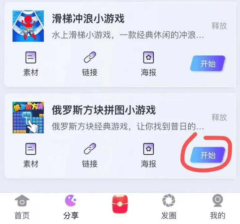 还有,只要申请了某个游戏,就可以生成海报或者链接,分享给别人去玩。
