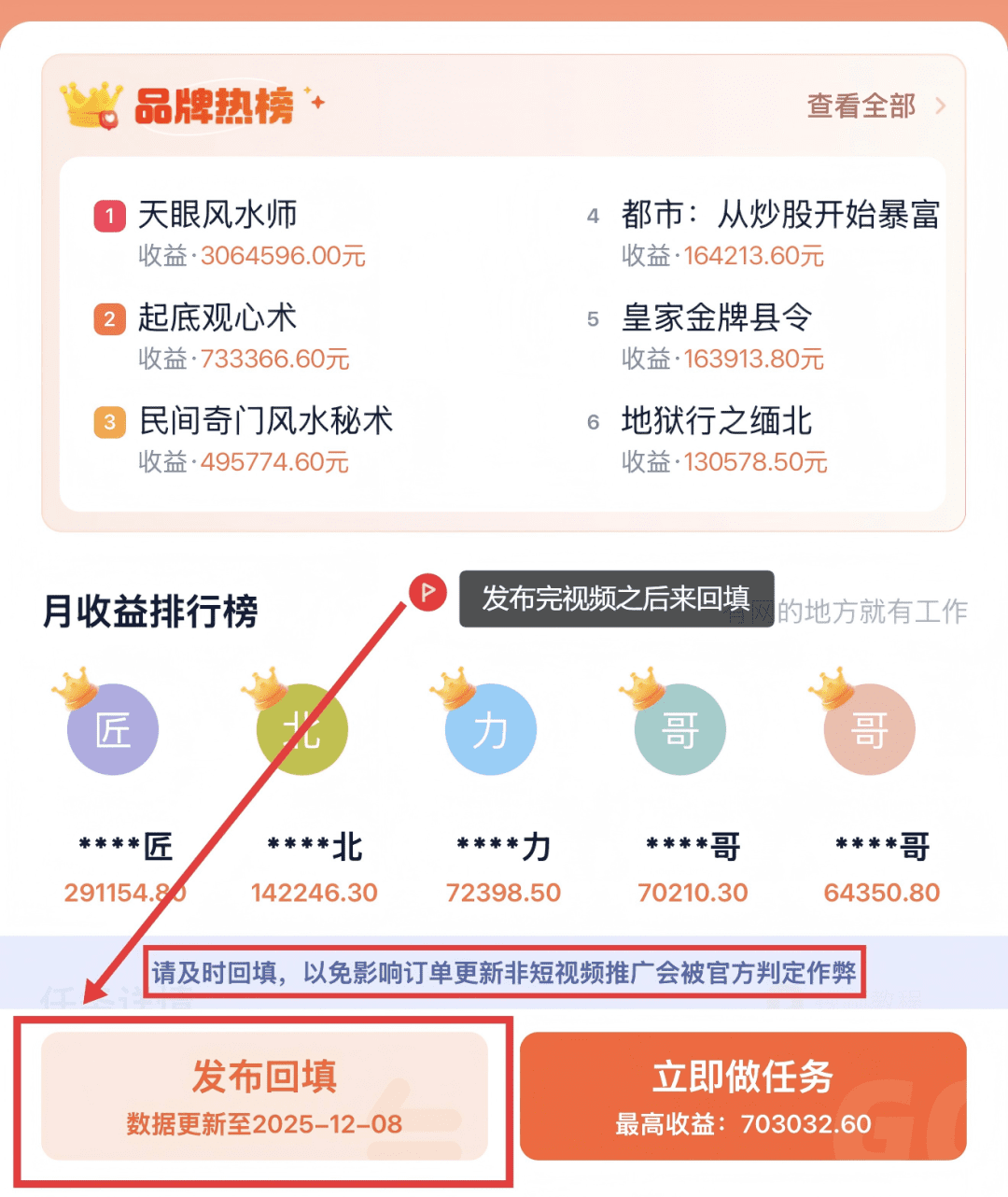 小说推文的视频内容有很多种,比如沙雕动画,解压视频,AI漫画解说之类的有的人会问了,那我不会做视频怎么办?很简单,不需要你做视频,只需要一键剪辑发布即可,软件自动操作,简单无脑03. 小说推文如何操作1. 获取推广权限首先你要选择一个推文的平台,这类平台有很多,如下图