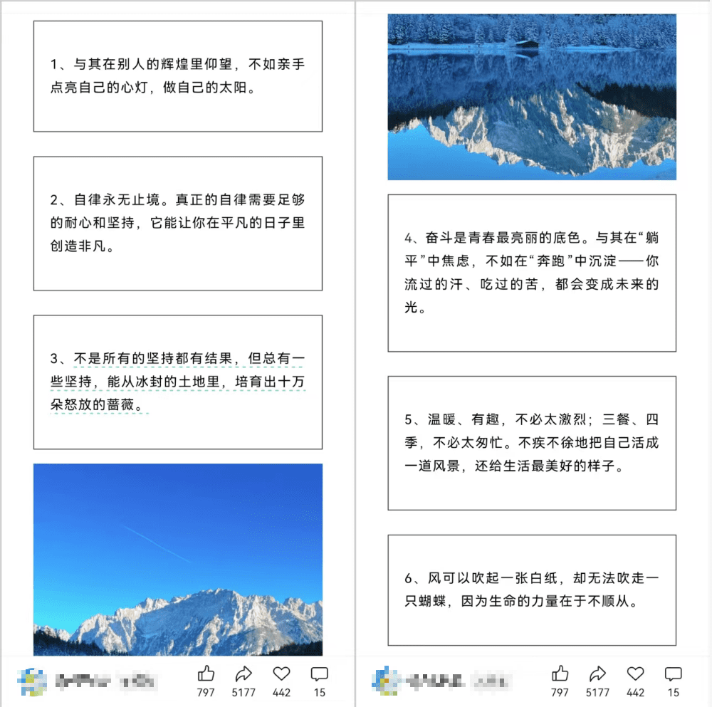 只需要把金句简单排一下版,插入几张风景图就可以发布了,如下图。