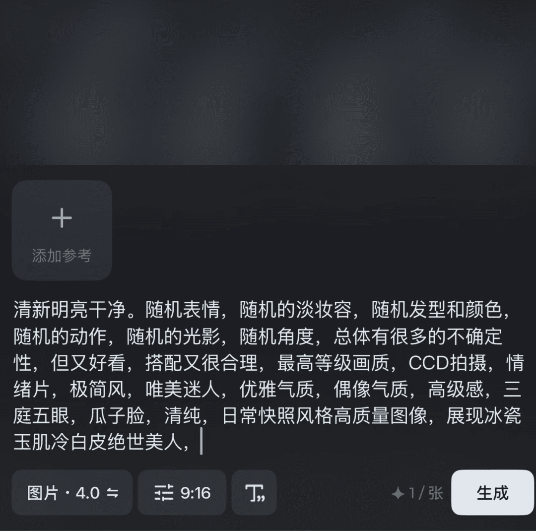手机打开即梦,复制上面的提示词,按照下图设置生图的模型和生成图片的尺寸,短视频选9:16,然后点生成即可。