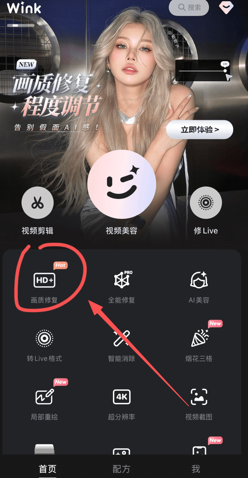 水印没有了,但图片还是有点模糊,所以我们还要用wink的画质修复功能,把图片变成高清,这样生成的视频质量才更高。