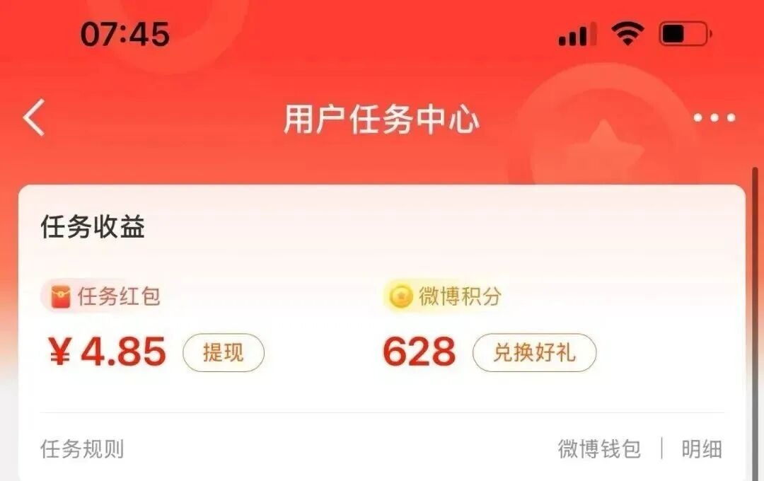 全程没什么难度,动动手指的功夫,真实的红包就到账了。过程中还能顺便看看自己感兴趣的内容,对新手特别友好。平时想到就刷一刷,不刻意也能完成。如果你本来就爱刷微博,那更是边看边赚,一点不耽误。