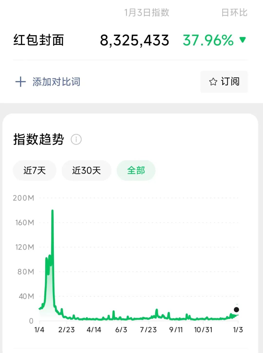 因为我在第一时间,我就在微信指数里,搜索了“红包封面”,出来的数据蛮让我意外的,因为真的很高。