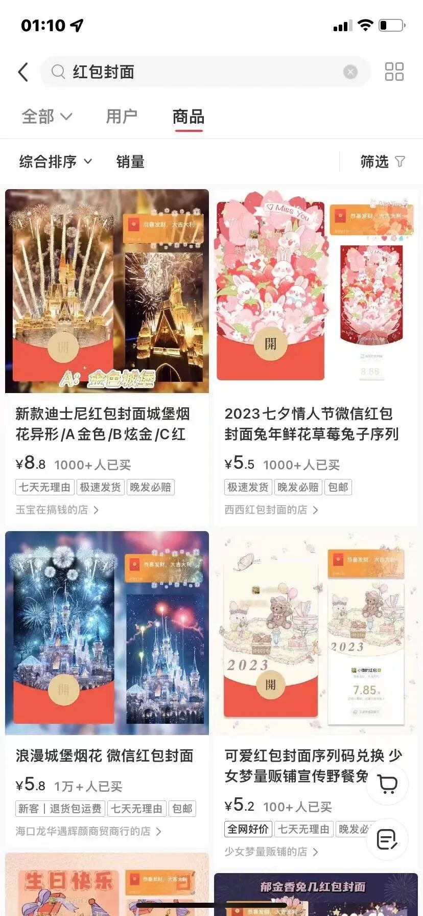 除了微信,我还搜索了小红书、淘宝、拼多多和咸鱼这几个平台,发现红包封面的交易量,真的挺高的。