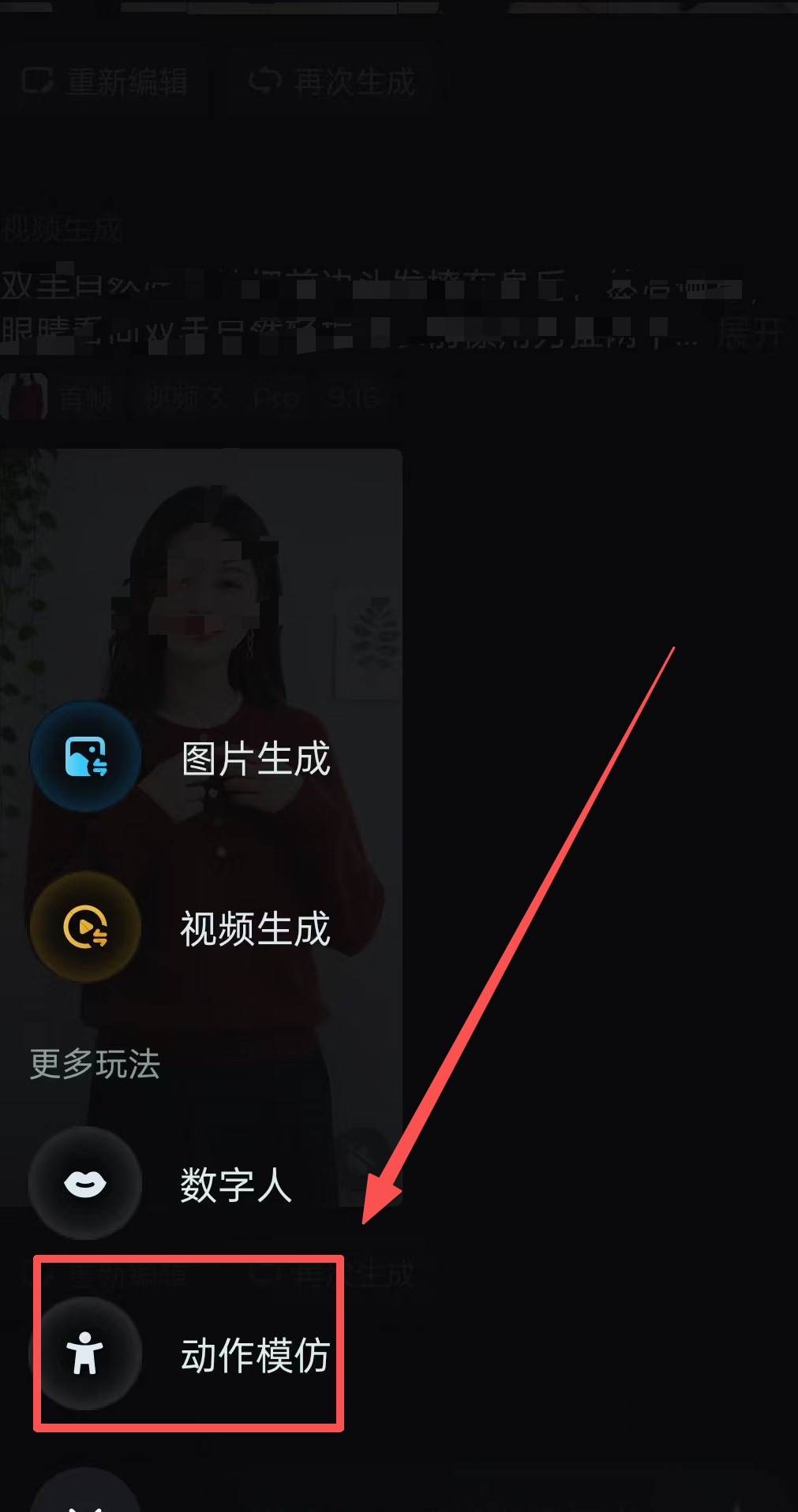 再就是如何让人物跳舞,选择动作模仿,在抖音里面下载一段别人跳舞的视频。