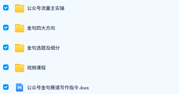 因为篇幅有限,所以可能有很多细节本篇文章还没有讲解清楚,所以我整理了一套金句赛道微信公众号新玩法拆解教程,如果你对此项目感兴趣,可以找我获取一份详细的视频教程。