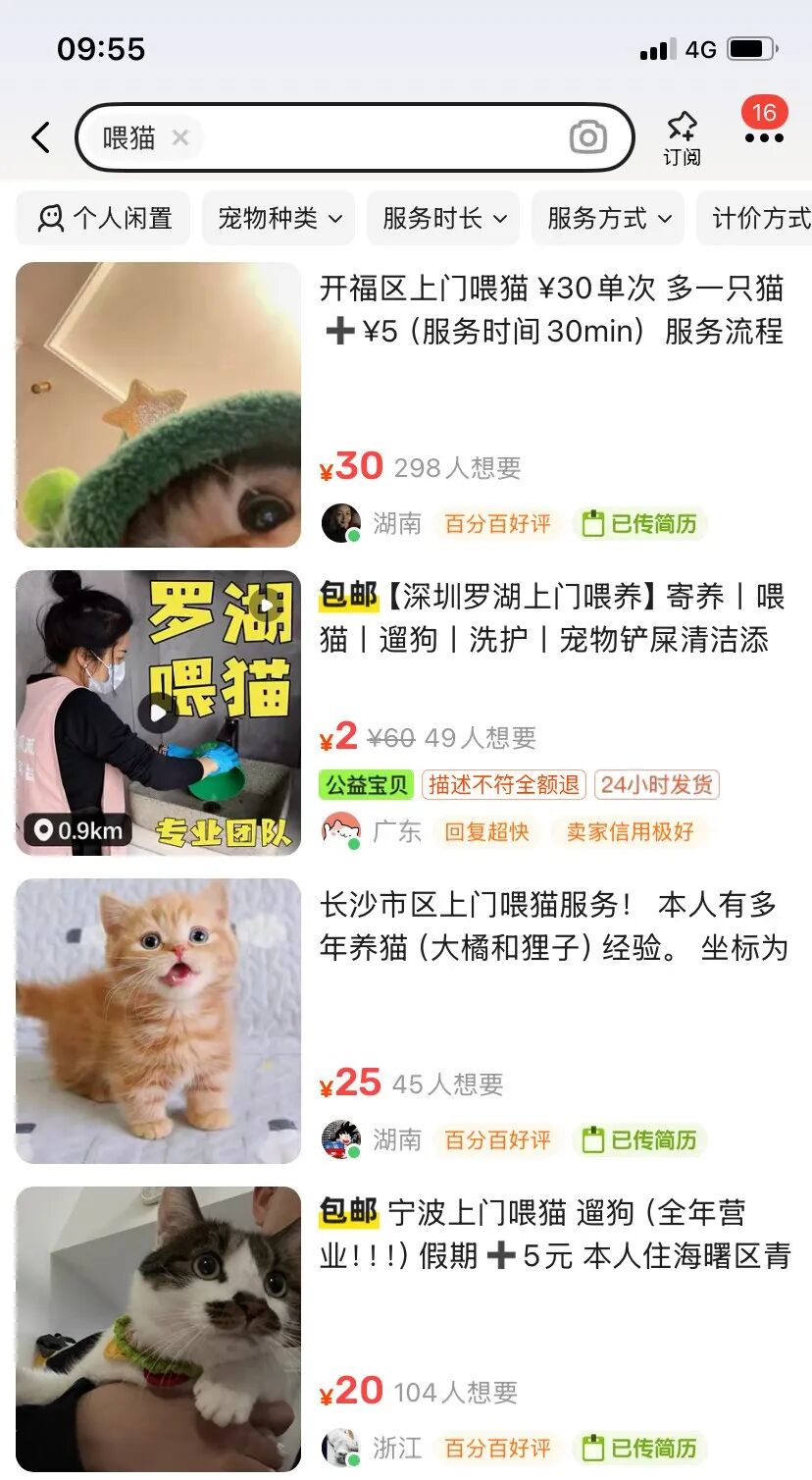 (2)一般这种价格就是30-60/小时,如果是晚间和加急单的话价格还会更高,获客可以通过线上短视频平台来操作,只要积累一定的客户后,后续就是躺赚的生意。五、上门喂宠物(1)主要就是节假日帮助别人喂宠物,遛狗等等,很多人假期放假可能不能把宠物带回家,放在大城市就需要人来照顾。平均一单的价格是30-150左右,总体来说还是非常的轻松,喜欢宠物的人可以去试试。