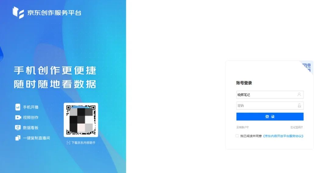 打开 京东创作服务平台(直接百度搜索即可)。