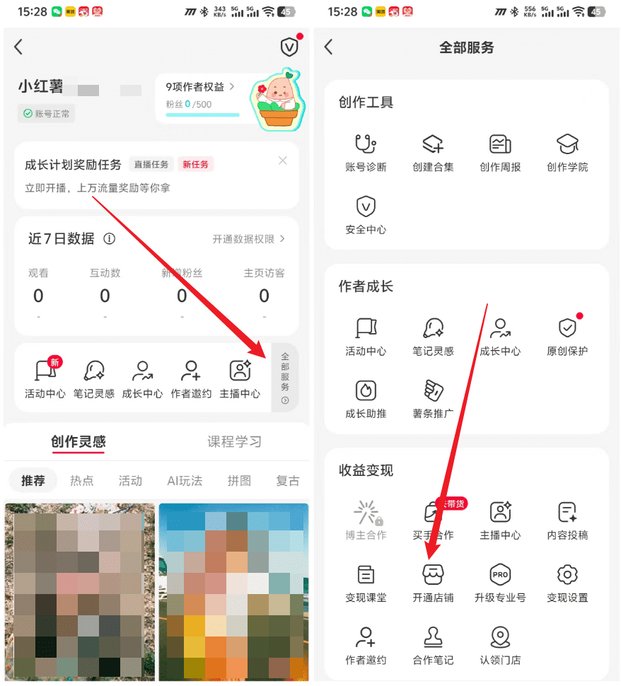 1. 打开小红书APP,点击右下角”我”2. 点击右上角三条横线,进入菜单3. 找到”创作者中心”,点进去4. 在服务列表里找到”开通店铺”,按提示操作就行