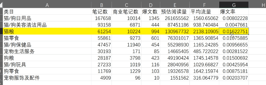 右上角能导出excle表,能看到不同类目有多少内容、爆文数和预估浏览量,在这里可以分析出平均流量和爆文率高的类目,这样的赛道就说明最近是比较获得,可以去做。