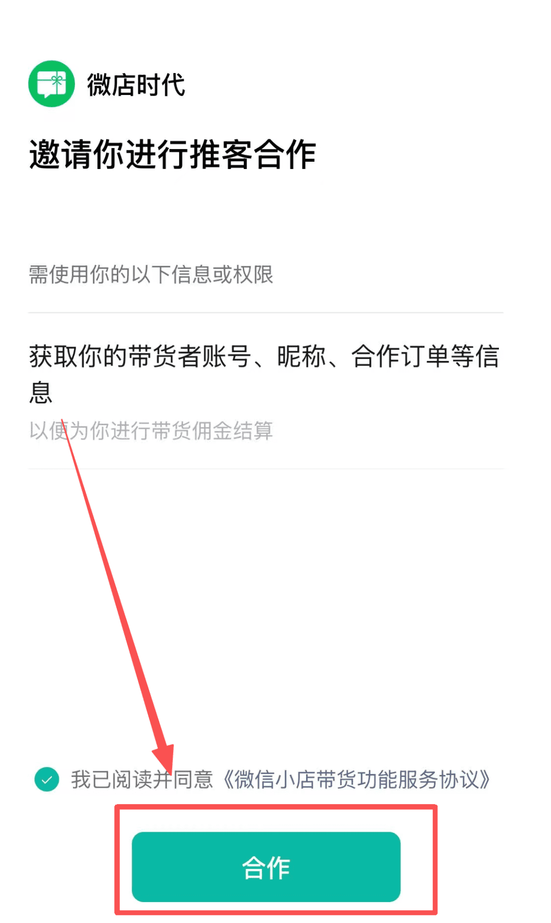 然后在弹出的窗口,点合作,就可以开始推广了。