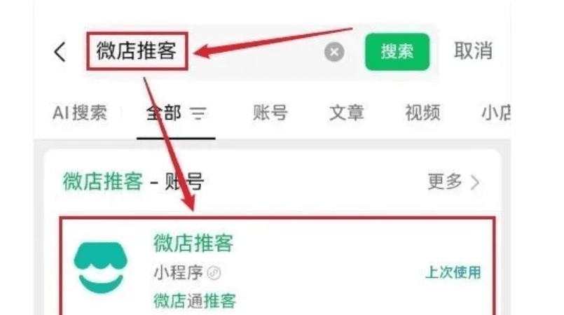 我们打开微信的搜索功能,然后直接搜索”微店推客”。