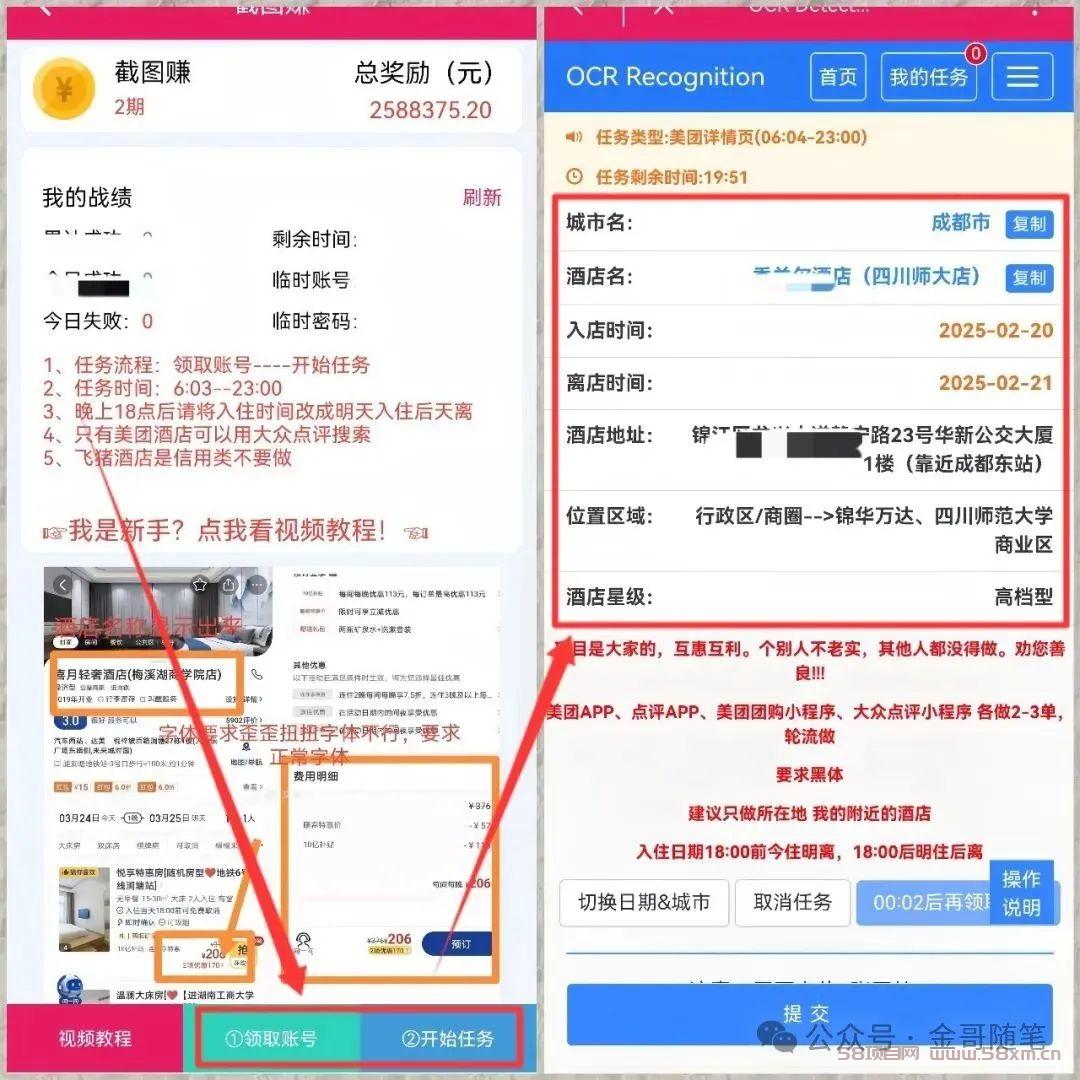 兄弟们,金哥今天又来给大家送福利了!这次挖到一个纯躺赚、零门槛的神仙副业——酒店截图任务!