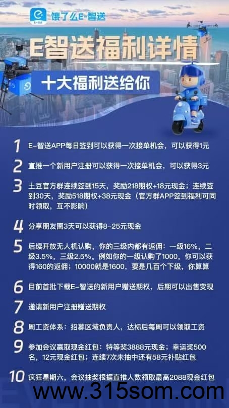 低空经济崛起,正成为风口项目的焦点。在阿里巴巴的战略赋能下,您将迎来实现财富自由的可靠机会!选择这一充满潜力的领域,开启属于您的财富之旅,成就更加美好的未来!通过饿了么智送,您将开启一段充满可能性的财富之旅,创造出令人向往的理想生活!