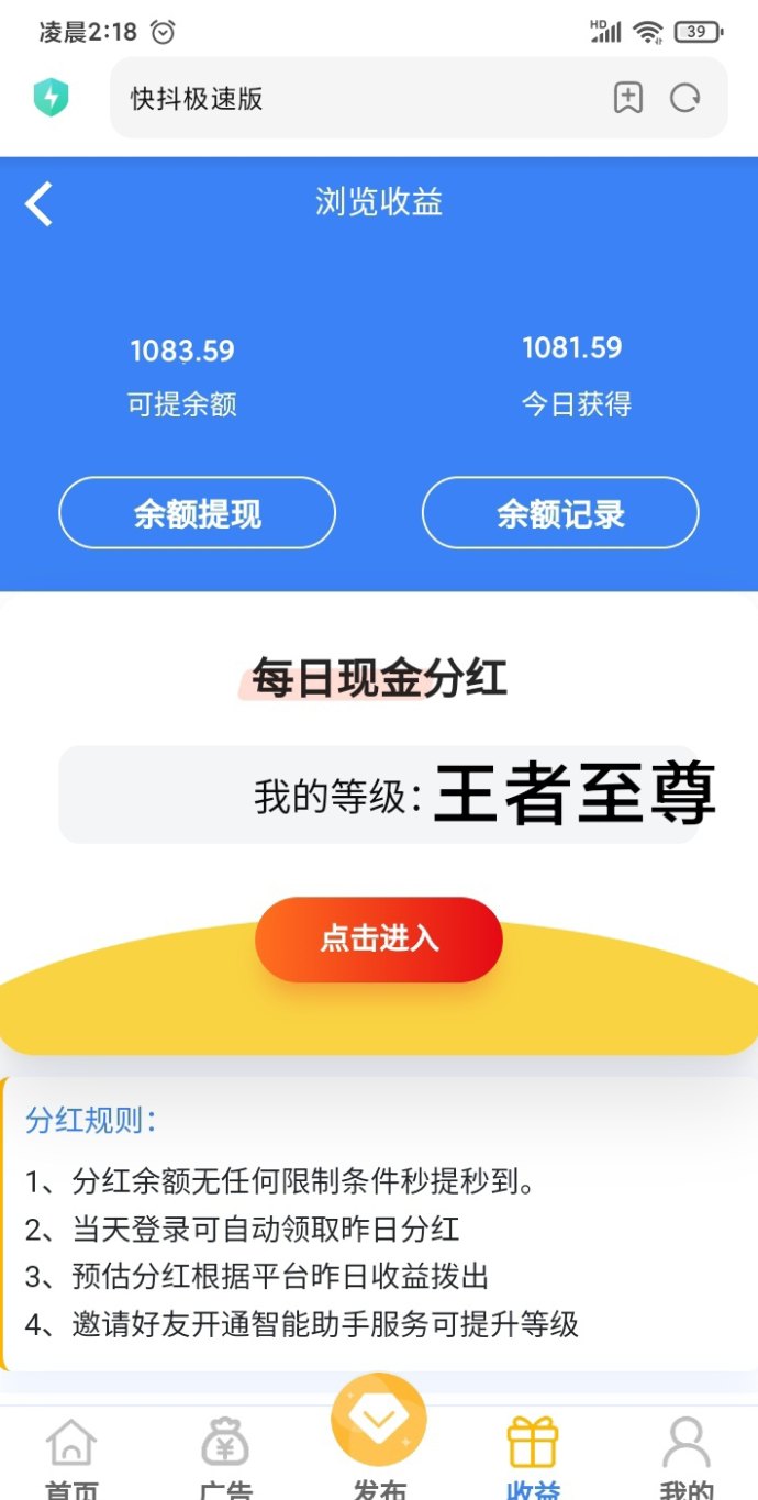 总之,快科技极速版不仅操作简単、收溢稳健,更结合智能化褂机和社交裂变模式,让用户零成本、零门槛即可实现日常零花收入。无论是想轻松赚零花,还是尝试互联网项目推广,加入快科技极速版都能利用碎片时间,开启快乐赚米新体验。