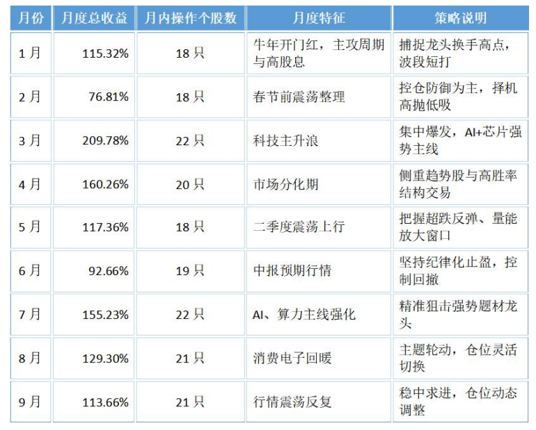 以下为2025年1月至9月的联德私募短线交易收益报告总览: