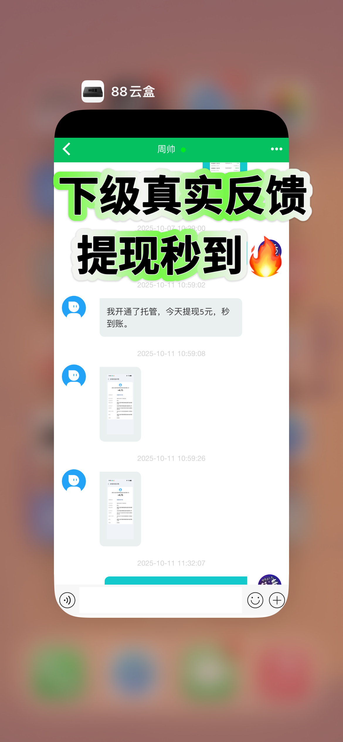 现在,加入88云盒,无需犹豫,无需等待,立即开启你的自动赚钱之旅。在这里,没有门槛限制,没有复杂操作,人人都能轻松上手;在这里,每一份努力(哪怕只是打开手机连接网络)都能得到实实在在的回报;在这里,稳定赚钱、快速提现、长久收益不再是奢望。别让犹豫耽误你的赚钱时机,别让繁琐阻挡你的增收脚步,88云盒,等你来解锁属于你的轻松赚钱新方式,让未来的每一个月,都能多一笔安心收入!