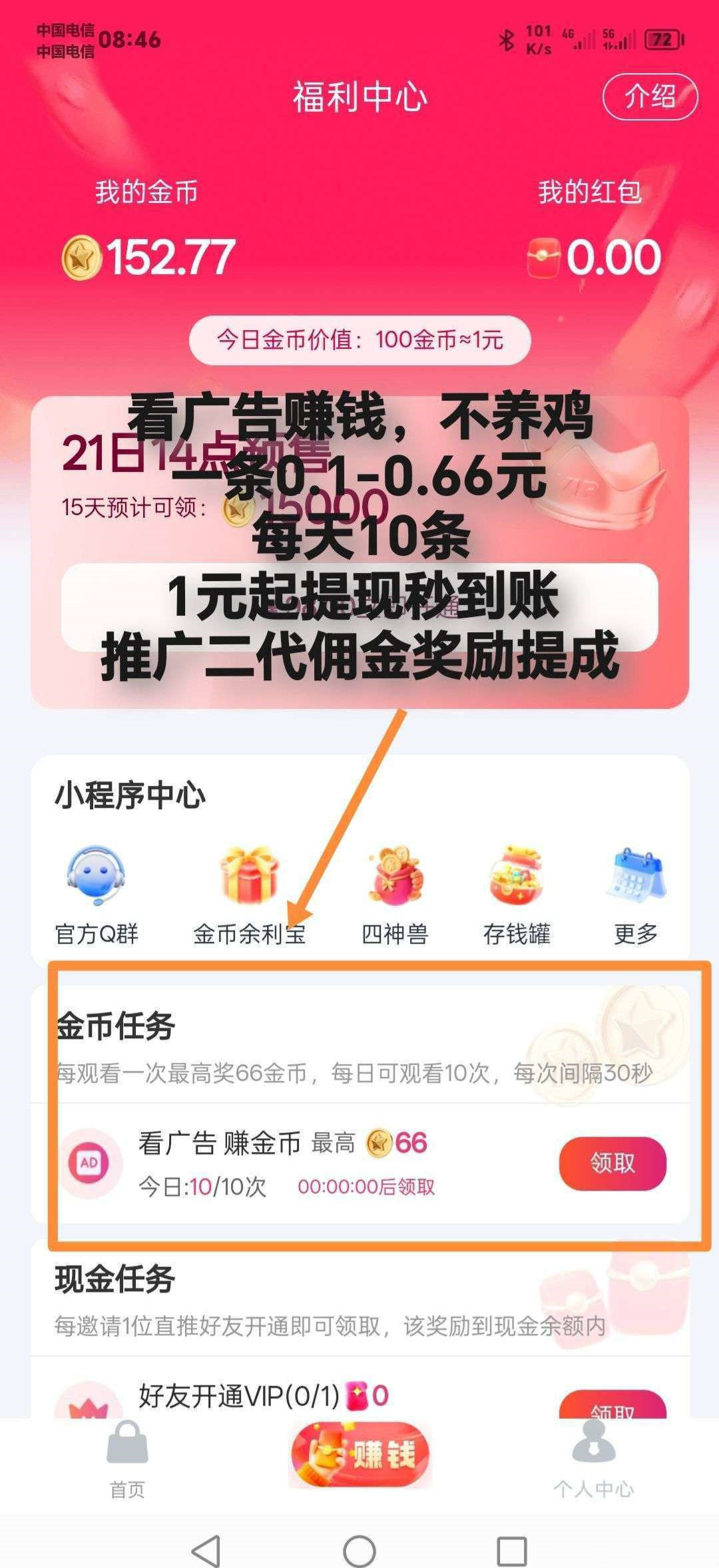 正文 首码【闪聚客】纯赚广告,不养机保底收益高,团队模式,每天天轻松赚 k223311 V评论者 /今天 /0 评论 /92 阅读 1124 首码【闪聚客】纯赚玩法,广告赚,不养机保底收益高,团队模式,邀请日入百米,一天轻松几十块!每天看10个广,得150-660金币,金币兑换红包,100金币=1米,满1米可提现!邀请收益:直推金币收益10%,间推5%项目对接:ws565188 或 ynm6898。 。项目对接:ws565188 或 ynm6898投诉/删帖