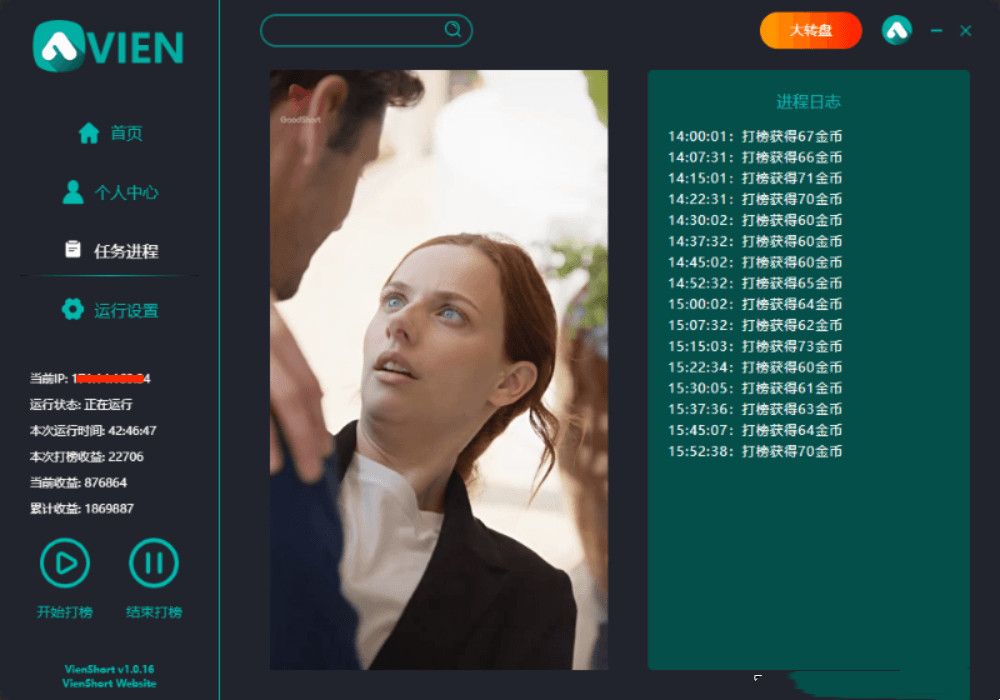 Vienshort短剧挂机项目为短剧平台提供流量支持。通过运行端模拟人工自动播放。我们需要做的是用一台电脑一天24小时挂机刷短剧视频赚金币 ,让其获得网络热度与流量,运行端可以同时操作多个账号进行挂机,整个过程全自动运行,让你无需操心,轻松享受收益,轻松成为首批吃肉用户。
