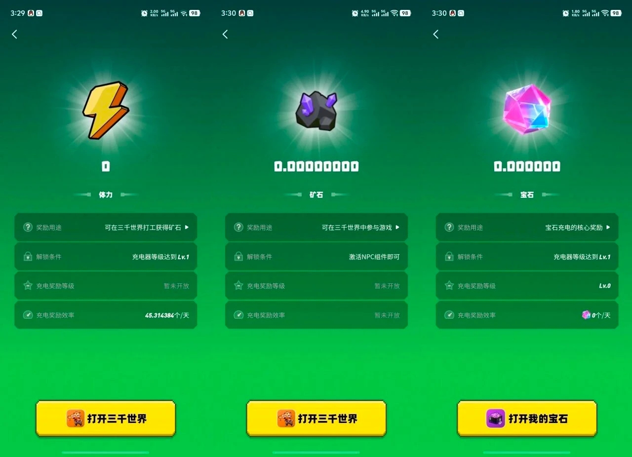 平台玩家越多后面将减产,越早注册的玩家获得的宝石更多,还可获得电力奖励,电力在新大陆旷场打工时需要消耗体力,宝石是电量大作战充电的核心奖励,可以兑换各种物品。