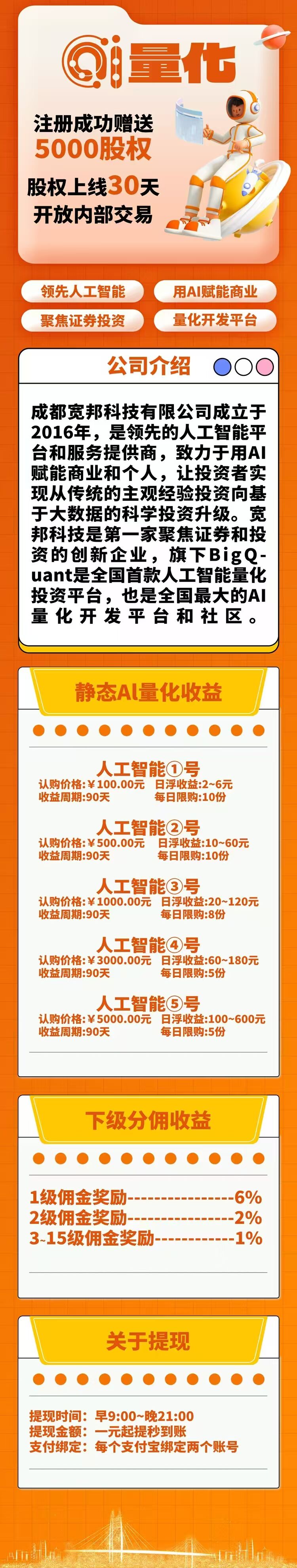AI量化正式上线,注册成功赠送5000股权,股权上线30天开放内部交易