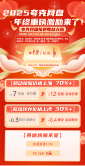 最后是收益见效快,夸克网盘现在正值年终激励活动期间,佣金大幅提升:移动端拉新12元每单,转存一次0.4元(每日首次转存),不用等漫长周期,推广后很快就能看到收益,新手能快速找到成就感。