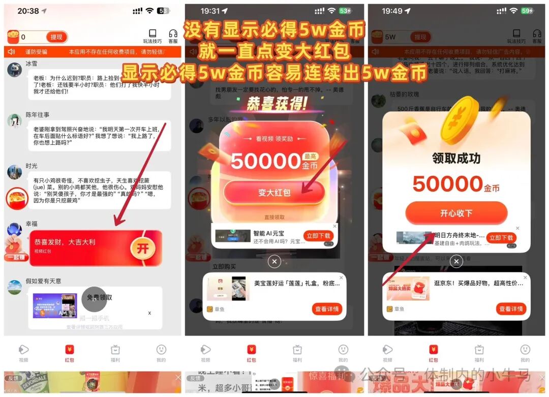 正文 五福夺宝:不养机一个广告5毛钱,可开团队收益! yimeng V评论者 /前天 /0 评论 /102 阅读 0120 首码五福夺宝,零撸广告赚钱,安卓苹果双端 ,不养机保底收益高,单机每天10-50+,公司背景: 千万级大公司 实力无上限!进入点击红包,看一个广告0.5元,亲测连续10个0.5元,就是5元,100个0.5元,就是50元,然后提现支付宝或者微信都是秒到进入平台直接点红包看广告就行,没有显示必得5w金币就不领取,到5w金币再领取。放水补贴,水特别大,满1米起提 秒到账!推广无线代收益,有团队可开团浏览器或支付宝扫码下载投诉/删帖