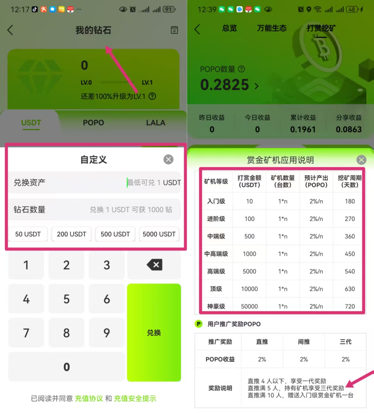 ①POPO-直播平台推广享VIP平台权益 矿机 团队收益!流量 群聊 直播 工会 佣金 主播收益 佣金