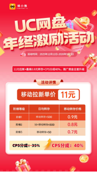 UC网盘年终推广活动已进入红利峰值,不仅佣金大幅提升,超长活动周期覆盖至次年三月。年终网盘拉新赚大钱的关键,靠吃透每一条拉新规则——摸清收益构成、避开违规陷阱、找对发力方向,才能真正实现收益拉满,稳稳接住这份年末增收大礼。