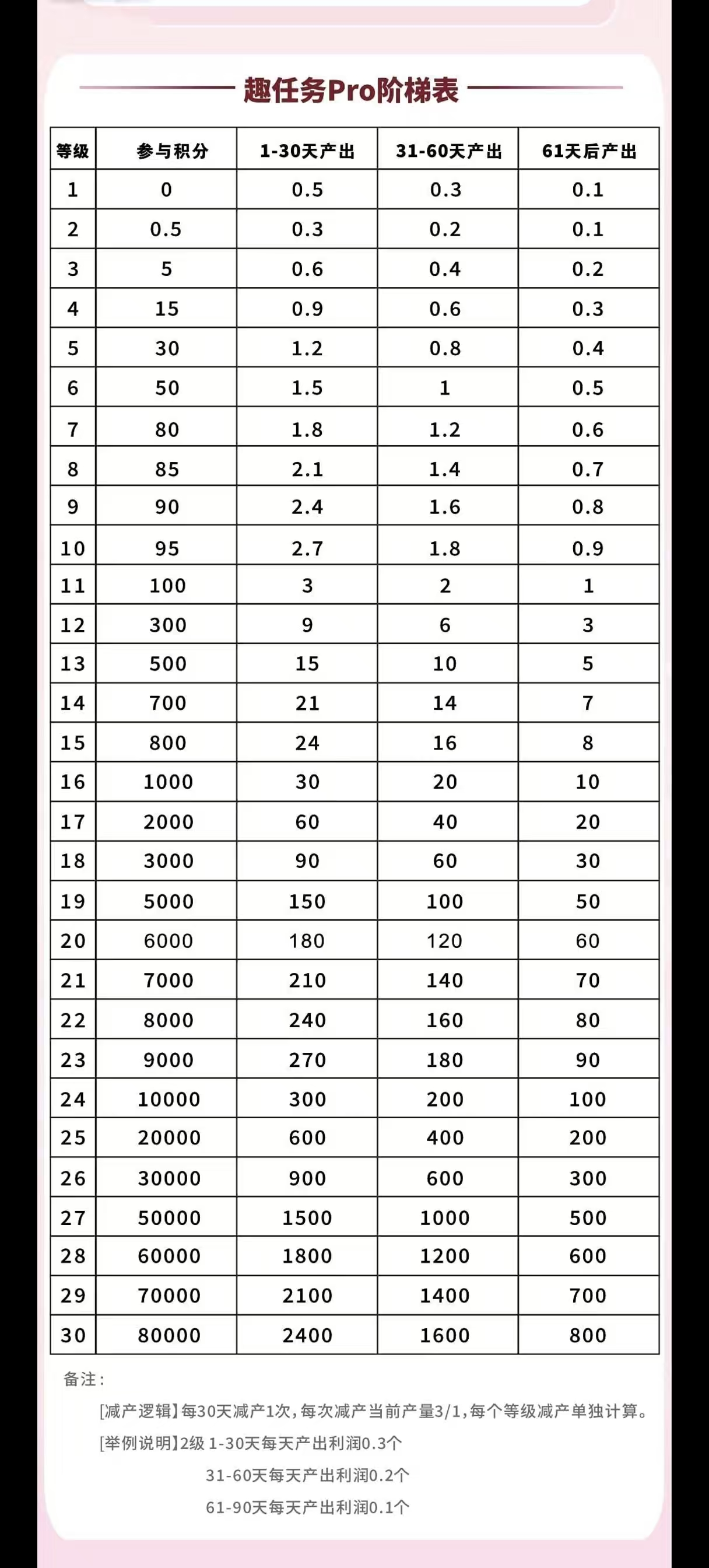 两代推广收益,每一个月减产1次(10%)。