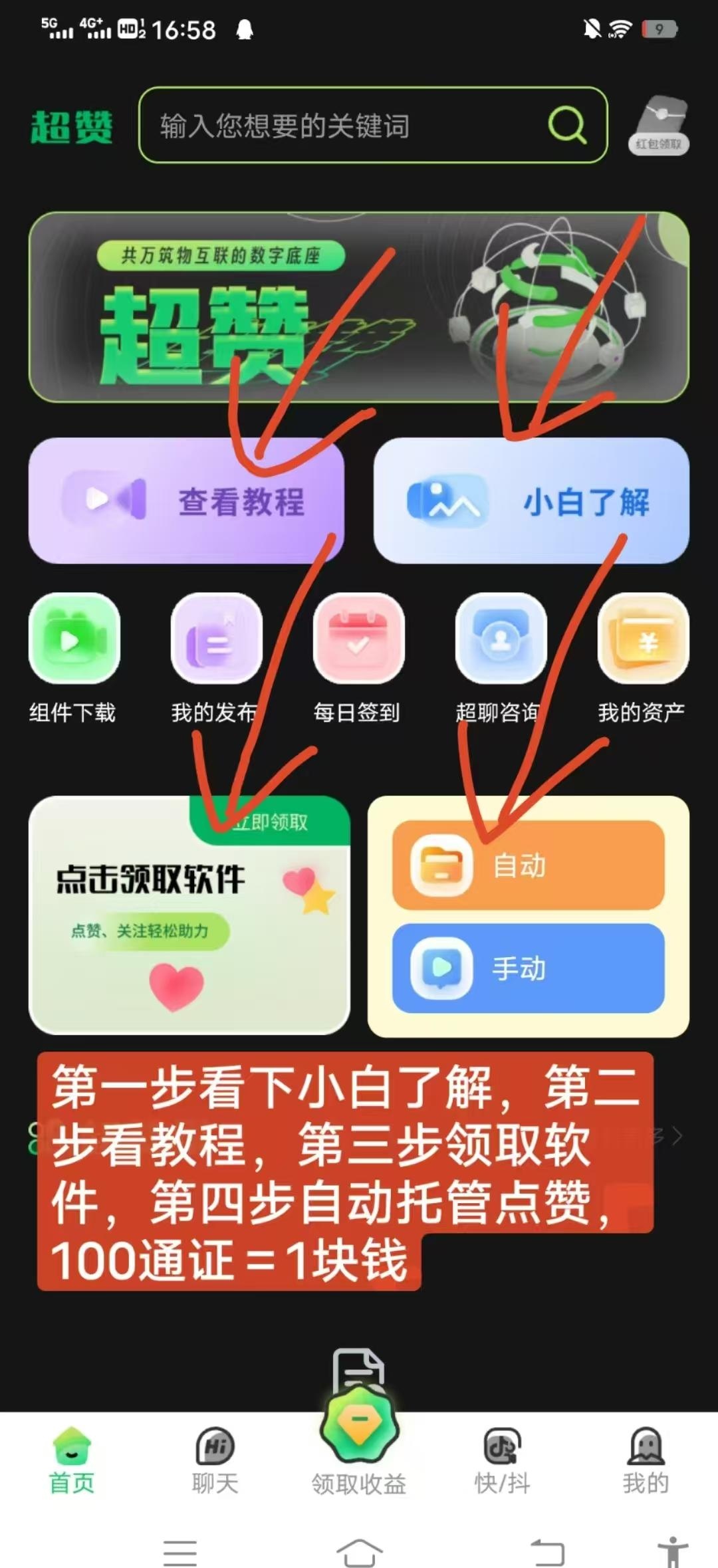 主打零撸:签到加自动卦机点赞20次每天奖励600通证